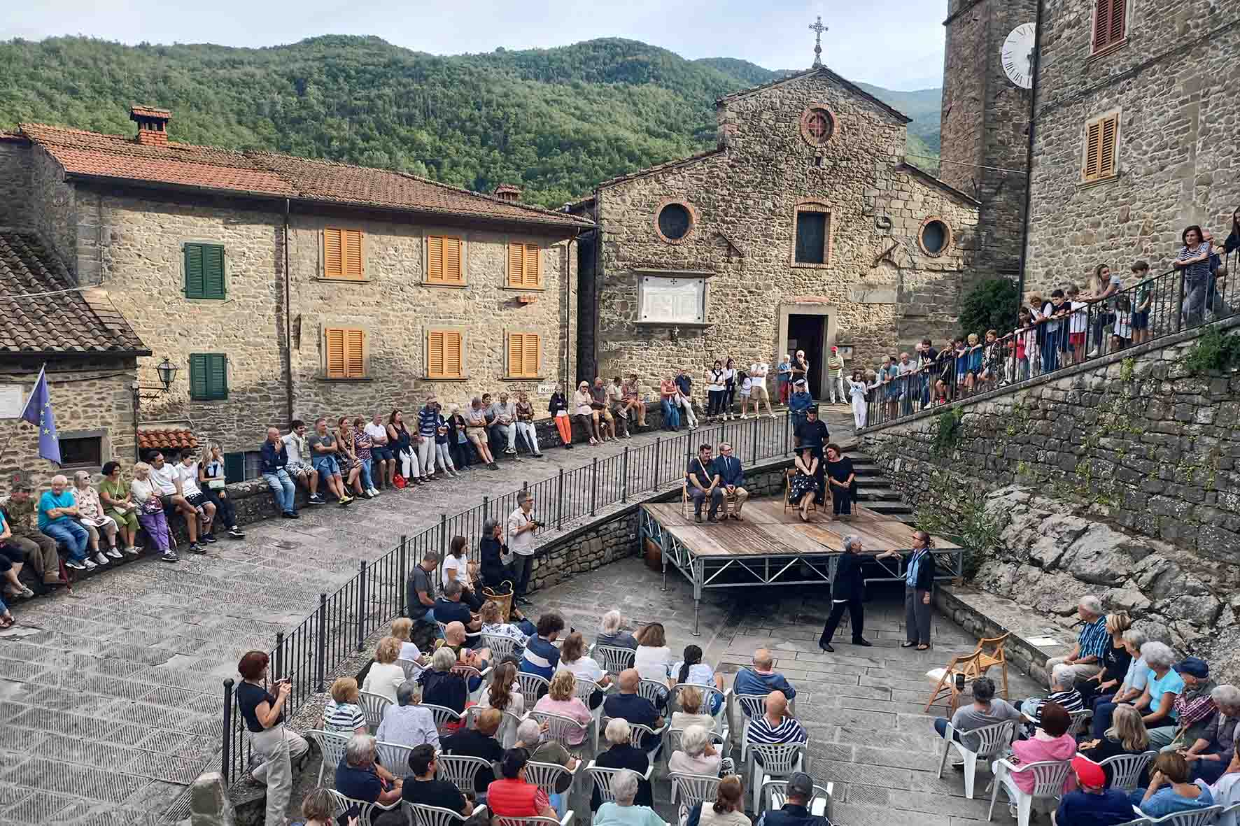 Uno spettacolo itinerante di comunità per raccontare la storia di Raggiolo. Sabato 23 agosto, alle 21.00, il borgo casentinese diventerà un grande teatro a cielo aperto dove andrà in scena “Homo Faber - La singolar tenzone tra il filo di lana e il bastone” che darà compimento a un progetto unico nel suo genere nel panorama nazionale. Il percorso, promosso dalla Brigata di Raggiolo con i contributi di EcoMuseo del Casentino, Fondazione CR Firenze e Cesvot, ha infatti aggregato e coinvolto l’intera comunità raggiolatta: il teatro è diventato uno strumento per consolidare legami, lavorare insieme, vivere il borgo per tutto l’anno, condividere memorie e dare vita a un processo creativo collettivo per la scrittura del testo, la messa in scena dello spettacolo e la realizzazione di costumi e scenografie.